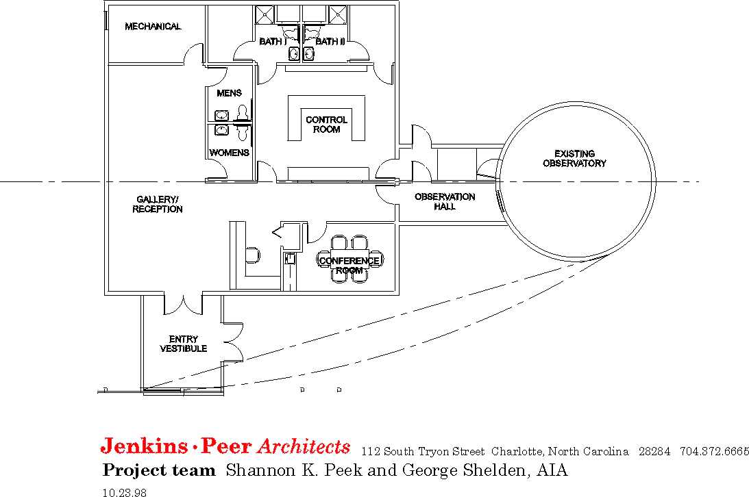 The Visitor Center has been designed andis uncer construction at the Dark Sky Observatory. Jenkins-Peer Architects, of Charlotte, provided the design and supervision services. Jenkins-Peer also designed Appalachian State's new Chemistry, Astronomy and Physics (CAP) building.
